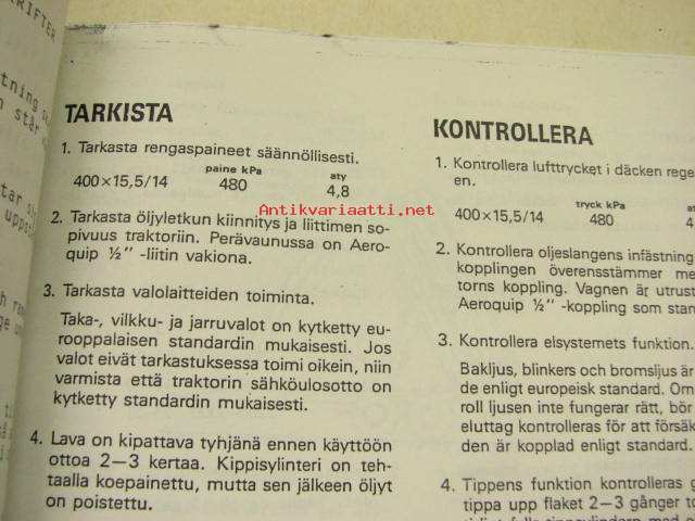 Velsa-Junkkari 8500 TV Autobalans -käyttöohje ja varaosaluettelo