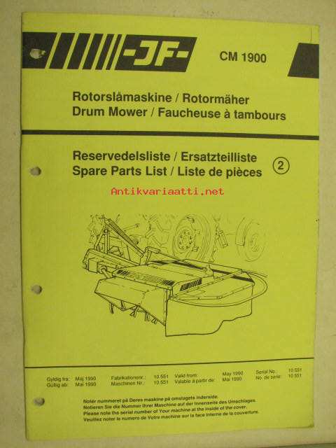 JF CM 1900 Rotorslåmaskine / Drum mower Spare Parts List serial nr 10.551- -varaosaluettelo