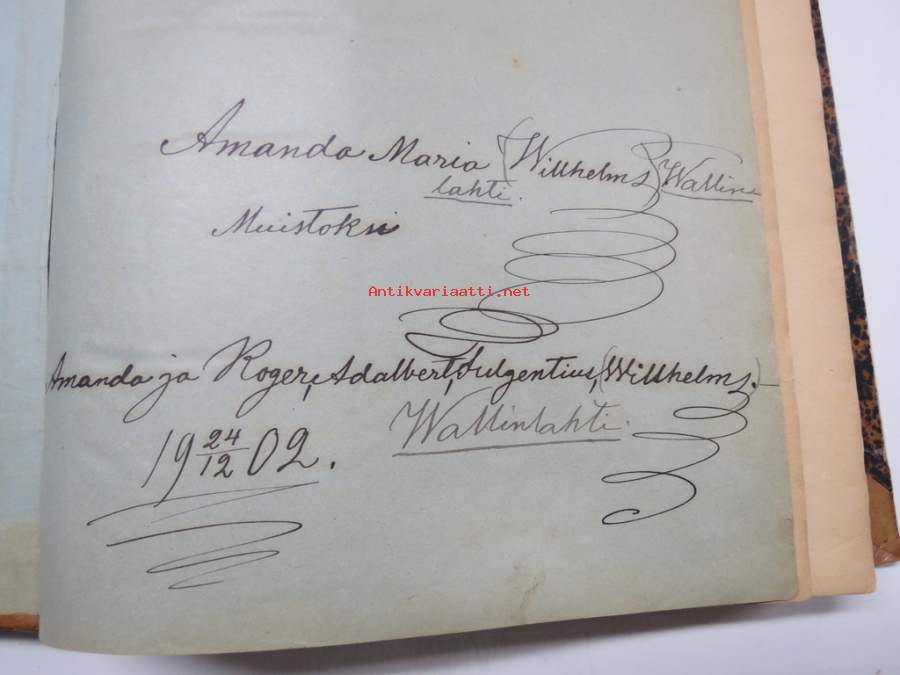 1896, 1897 24 x 30 cm sidos, jossa etulehdellä omistajamerkintöjä; Amanda Maria (Wilhelms) Wallinlahti / Amanda ja Roger, Adalbert, Fulgentius, 24.12.1902 - muistoksi. Mitä ilmeisimmin lehti on aikanaan tilattu Kokkolaan - Gamla Karleby -merkintä etusivulla.