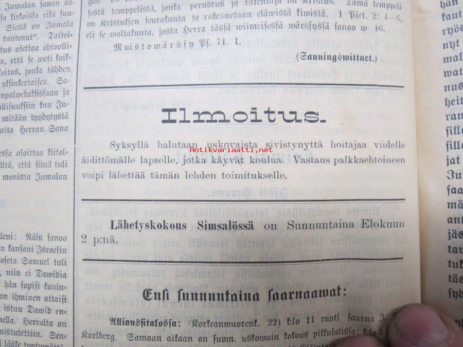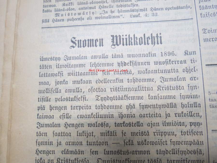Suomen Wiikkolehti 1896 & 1897, sidottu vuosikerta, uskonnollinen, erityisesti lähetystyö Kiina & Intia, 3 kpl liitekarttoja sekä Frans Hannula hautapatsaskuva