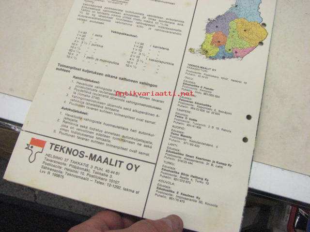Teknos-Maalit Oy vakiotuotteiden hinnasto 1970 nr 1