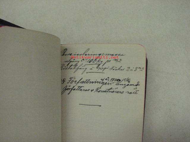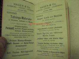 Hagen & Co, 1903 8 x 11 cm almanakka / muistikirja, mukana myös lyijykynä, runsaasti muistiinpanoja. Huomaa kaunis vaakunapainatus.