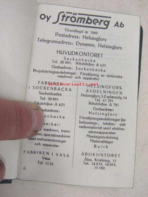 Oy Strömberg Ab, 1945 7 x 11 cm kirja.