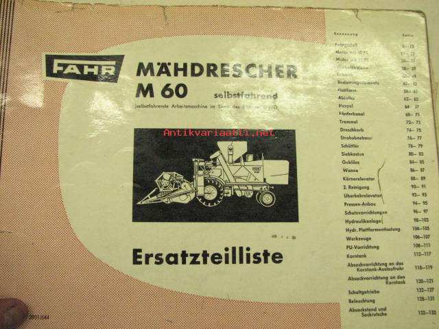 Fahr M 60 Ersatzteilliste -leikkuupuimuri varaosaluettelo, saksan kielellä