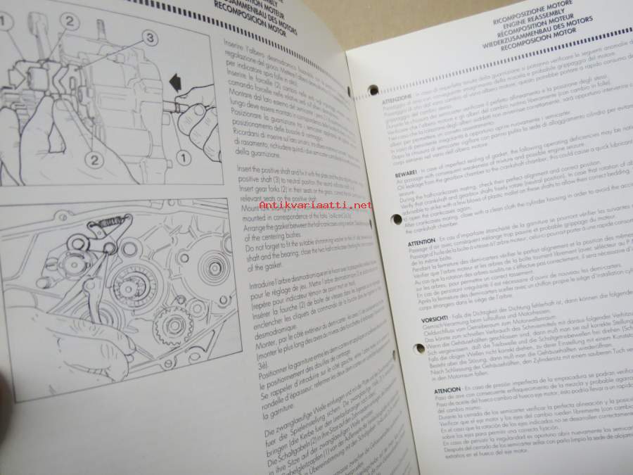 Cagiva Mito Workshop Manual, monikielinen korjaamo-ohjekirja
