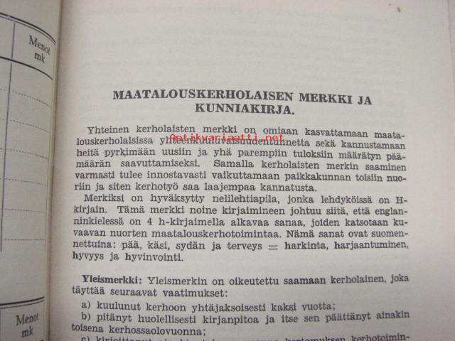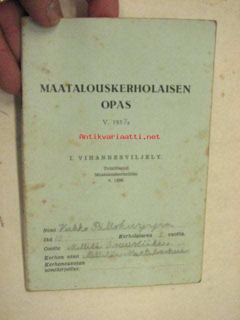 Maatalouskerholiitto 11 x 17 cm vihkonen. Merkintöjä.