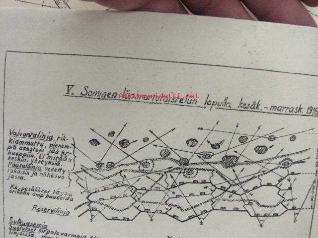 Kenttälinnoituksia, linnoistuskarttoja (Somme) -linnoitustekniikkaan liittyviä opetuskarttoja 5 kpl