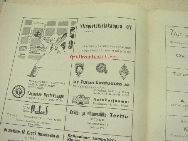 Saatavilla 1 kpl Julkaisuvuosi 1952 Sivuja 24 Painos 1. Kunto K3 Sidonta/painoasu Nidottu (pehmeäk.) Kielet Suomi