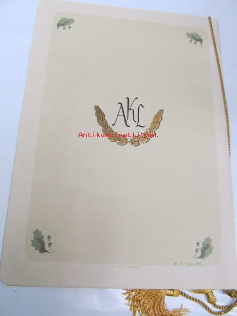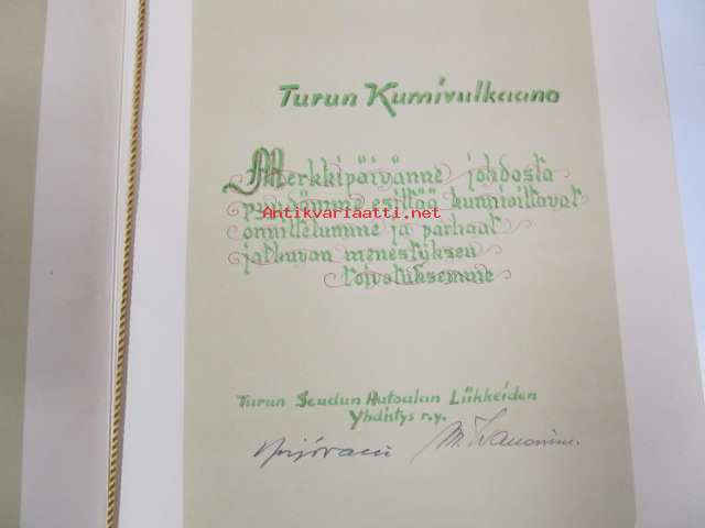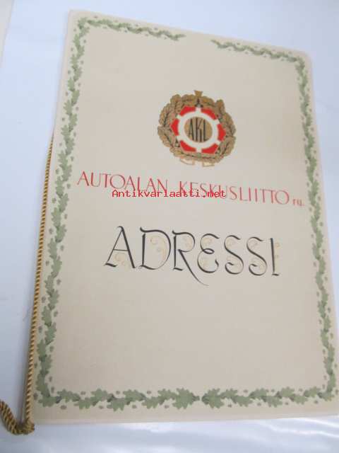 Autoalan Keskusliitto ry. Onnitteluadressi Turun Kumivalkaamolle 15.5.1956