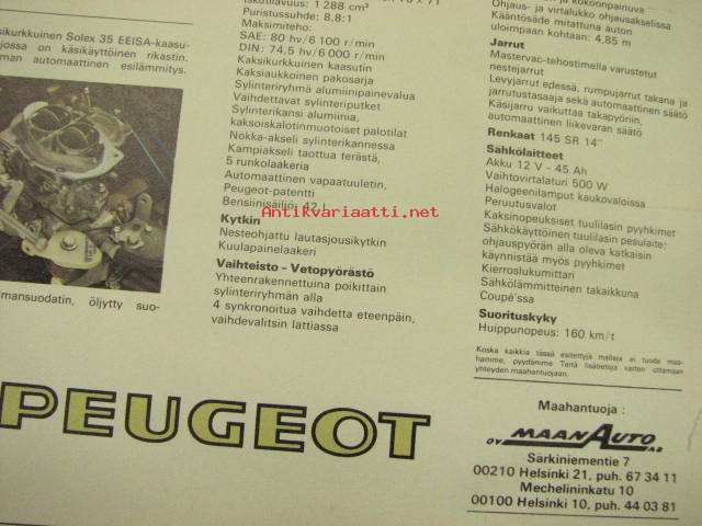 Peugeot 304 1974 -myyntiesite