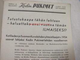 Yhtyneet Kuvalehdet Oy, 1953Tämä on uuden lehden näytenumero. Koko n 21 x 14 cm. Ohjeita mm. lasten neuleita ja mm. naisten lukunuttu.