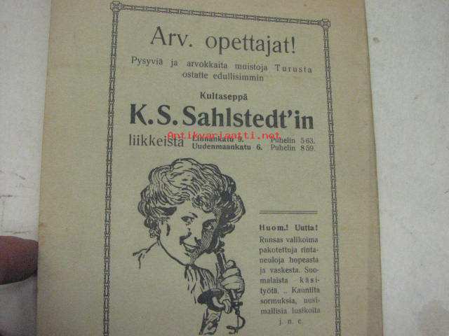 Saatavilla 1 kpl Julkaisuvuosi 1914 Sivuja 24 Kunto K3 Sidonta/painoasu Nidottu (pehmeäk.) Kielet Suomi