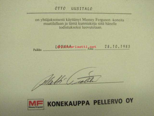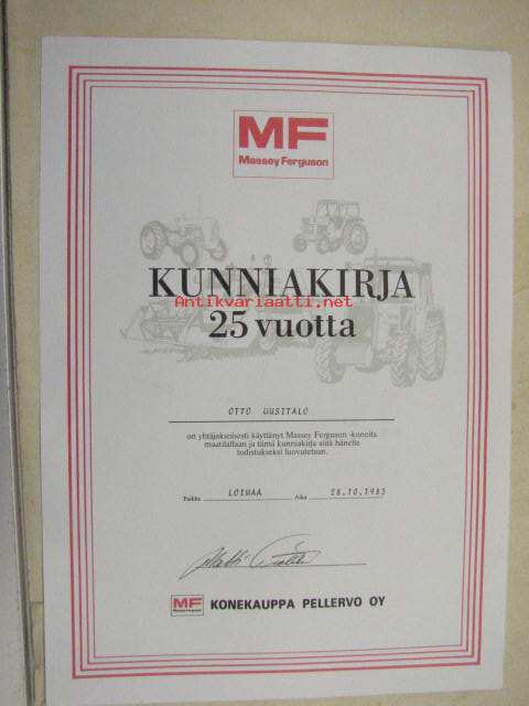 Massey-Ferguson Kunniakirja 25 vuotta... yhtäjaksoisesti käyttänyt Massey-Ferguson -koneita... Loimaa 1983