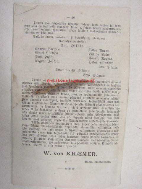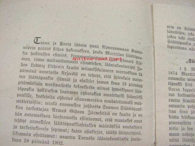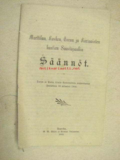 Marttilan, Kosken, Auran ja Karinaisten kuntien Säästöpankin säännöt 1902