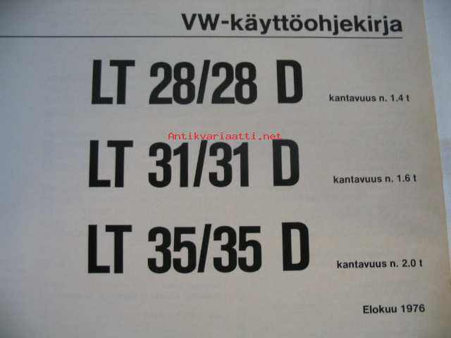 VW LT LTD käyttöohjekirja elokuu 1976