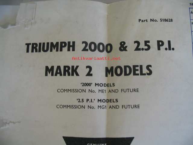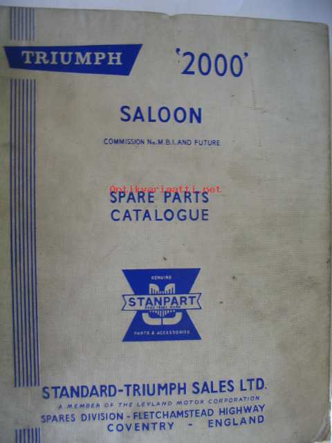 Triumph 2000 Saloon Spare parts catalogue varaosaluettelo