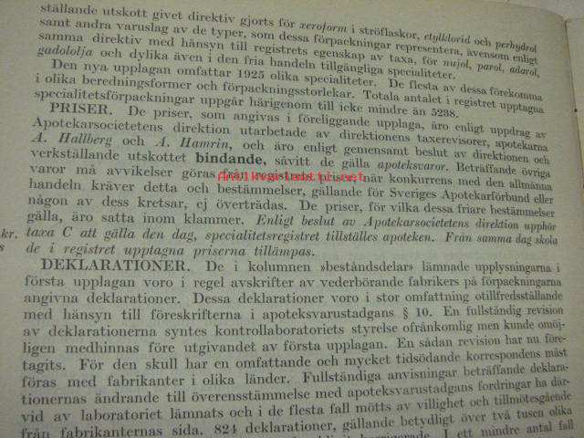 Specialitetsregister utgivet av Apotekens Kontrollaboratorium 1928