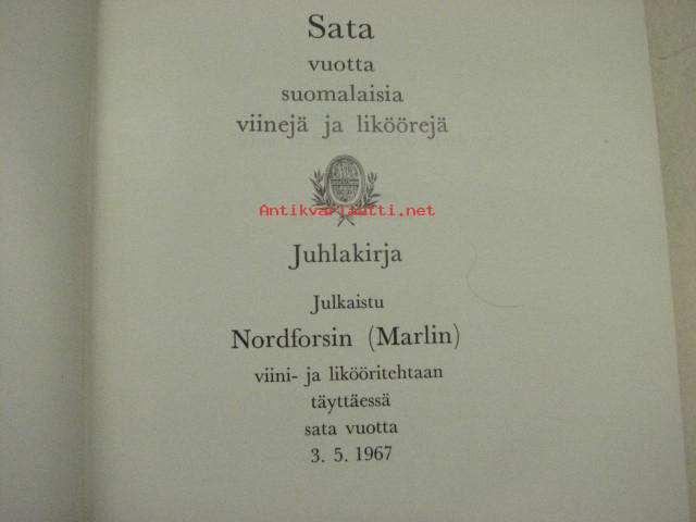 Sata vuotta suomalaisia viinejä ja liköörejä Nordfors (Marli) 1867-1967