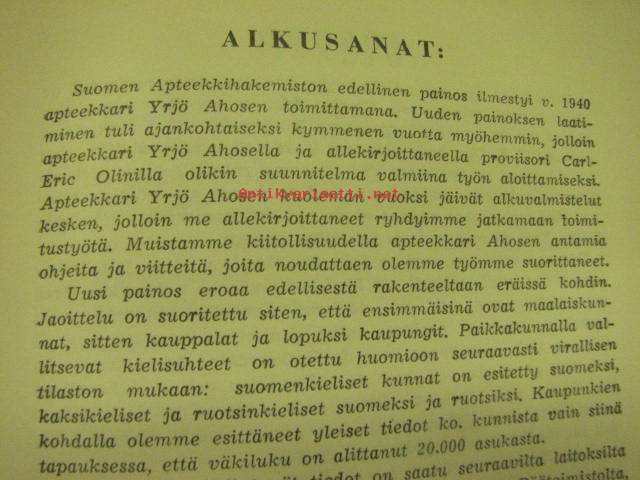 Sinikka Koikkalainen, Carl-Eric Olin, Suomen Farmaseuttiliitto ry, 1955 16 x 21 cm kirja.