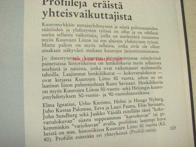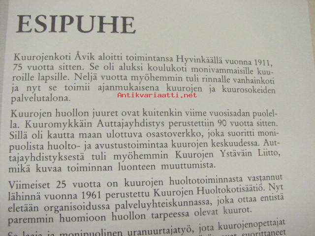Risto Ojala, toim., Kuurojen huoltokotisäätiö, 1986 22 x 26 cm kirja. Yhteenveto englanniksi ja ruotsiksi.