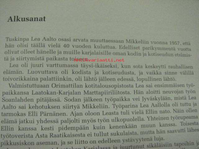 Lea Aalto Karjalan kunnailta Savonmuan Hilimaksi