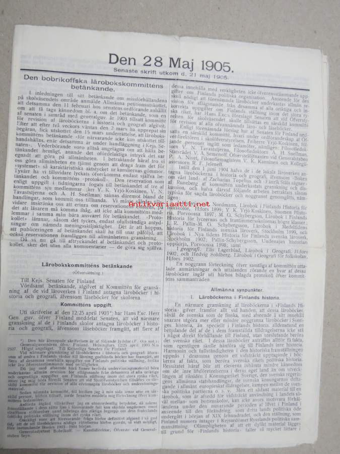 Den 28. Maj 1905 -sortokauden aikainen Tukholmassa julkaistu lehtinen