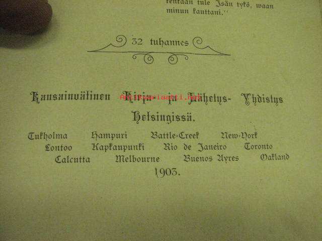 E.G. White, Kansainvälinen Kirja- ja Lähetysyhdistys, 1903 13 x 19 cm.