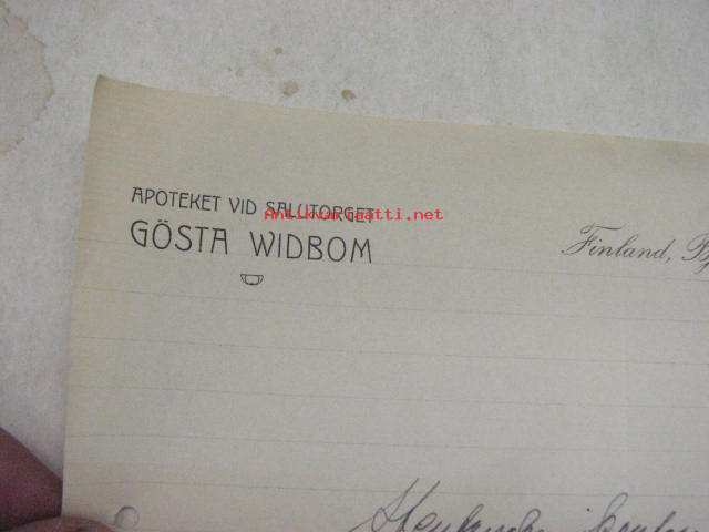 Apoteket vid Salutorget Gösta Widbom, Björneborg, 22.5.1914 -asiakirja, allekirjoitus Gösta Widbom