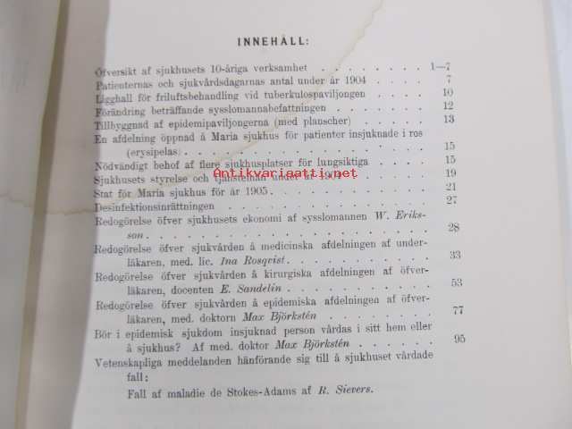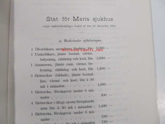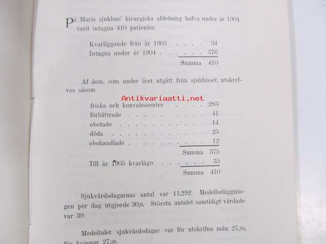 Årsberättelse från Maria sjukhus i Helsingfors för år 1904