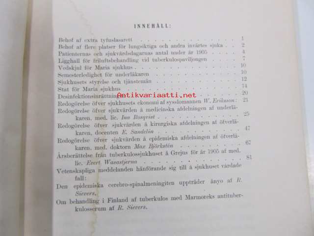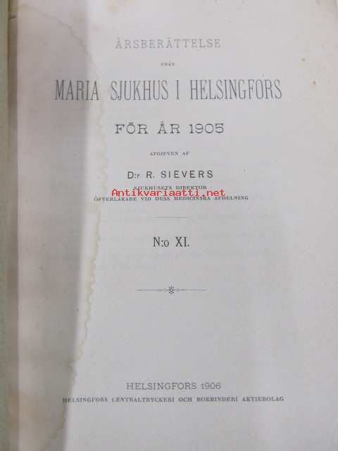 Årsberättelse från Maria sjukhus i Helsingfors för år 1905