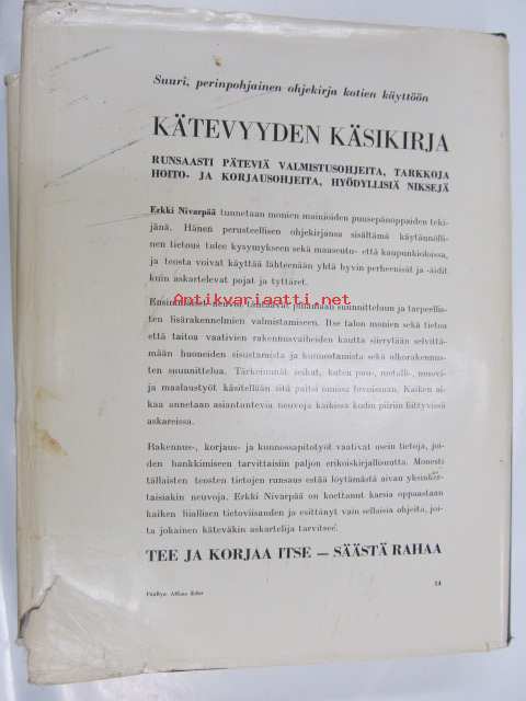 Saatavilla 1 kpl Julkaisuvuosi 1962 Sivuja 954 Painos 1. Kunto K3 Kansipaperi K2 tyydyttäväkuntoinen, kirja itse hyväkuntoinen Sidonta/painoasu Sidottu (kansipaperit) Kielet Suomi