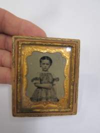 Tyttö - ambrotyyppi (ambrotype) -kehyksessä oleva valokuva noin 1850-1860 luvulta
