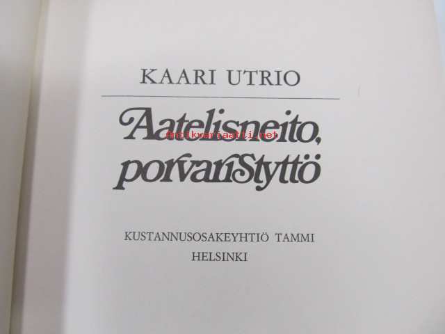 Saatavilla 1 kpl Julkaisuvuosi 1974 Sivuja 323 Painos 1. Kunto K3 Sidonta/painoasu Nidottu (pehmeäk.) ISBN 951-30-3126-8 Kielet Suomi
