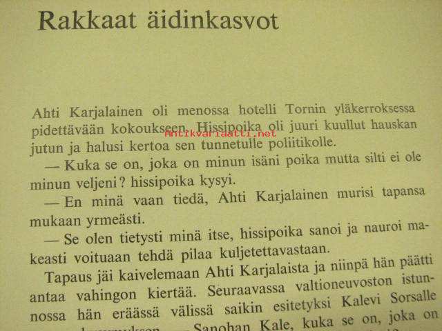 Saatavilla 1 kpl Julkaisuvuosi 1978 Sivuja 87 Painos 1. Kunto K3 Sidonta/painoasu Sidottu (kansipaperit) ISBN 951-30-4572-2 Kielet Suomi