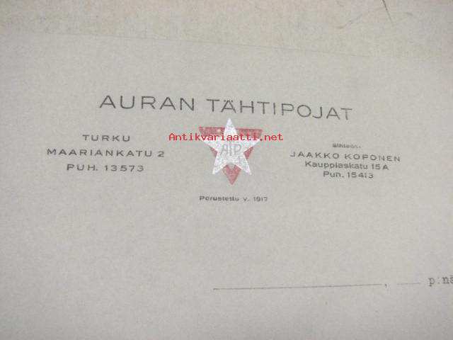 Auran tähtipojat (Turun NMKY:n partio-osasto) -kirjelomake 1940-luvulta