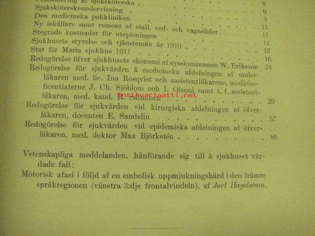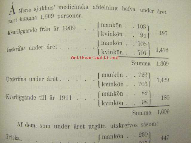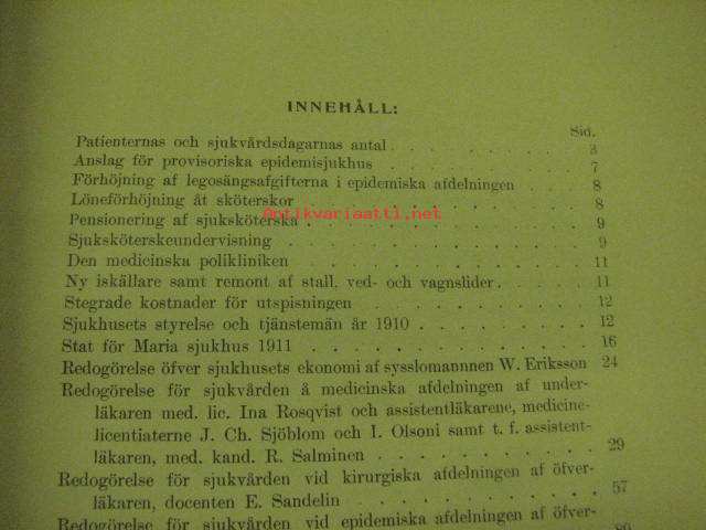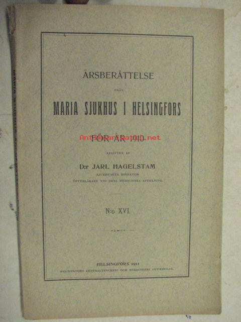Maria Sjukhus i Helsingfors Årsberättelse för år 1910 -vuosikertomus