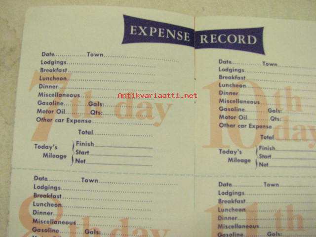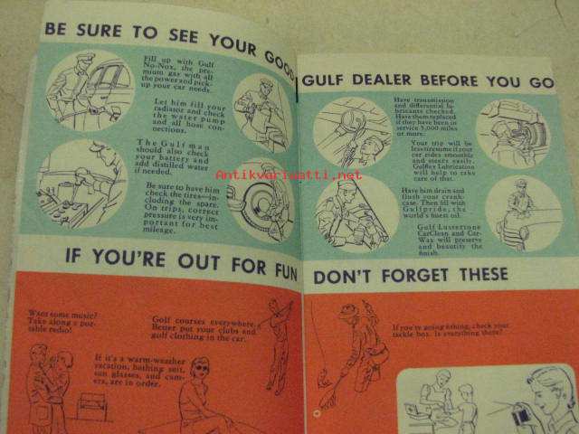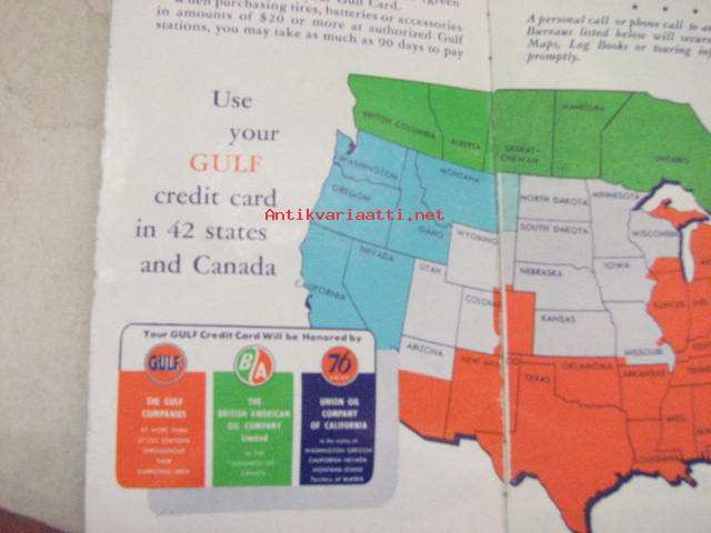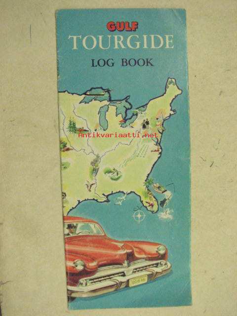 Gulf Tourgide Log Book -huoltoasemaketjun USA:ssa jakama ajoreitin seurantavihkonen 1950-luvulta