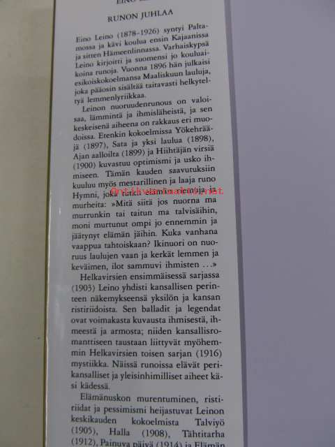 Saatavilla 1 kpl Julkaisuvuosi 1999 Sivuja 639 Painos 5. Kunto K3 Sidonta/painoasu Sidottu (kansipaperit) ISBN 951-23-3208-6 Kielet Suomi