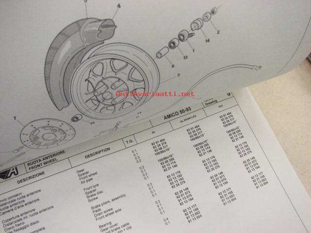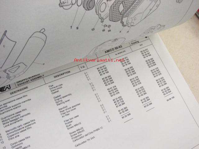 Aprilia Amico 50-93 GLE-GL-GL Sportlife spare parts catalog -varaosaluettelo englanniksi