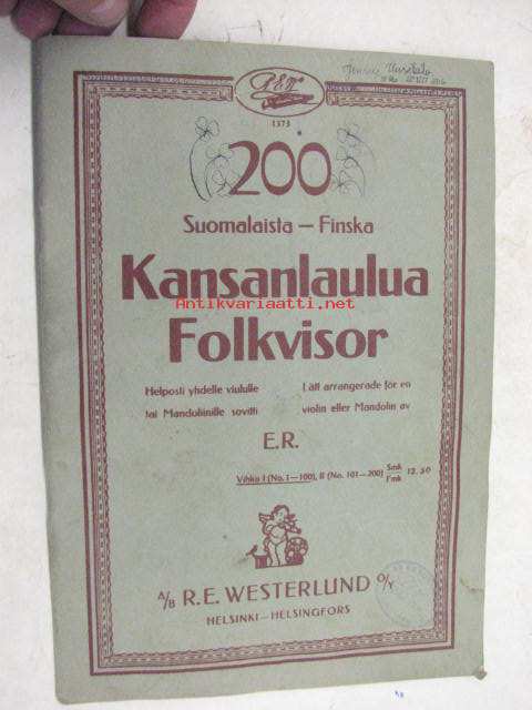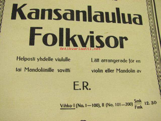 200 Suomalaista Kansanlaulua Folkvisor I-II helposti yhdelle viululle tai mandoliinille sovitti E.R.