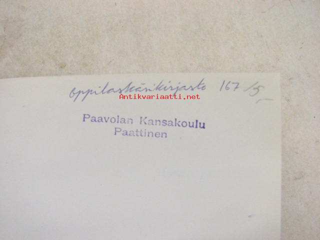 Saatavilla 1 kpl Julkaisuvuosi 1970 Sivuja 178 Painos 1. Kunto K2 Koulukirjaston leima, muovitettu Sidonta/painoasu Kuvitettu kovakantinen Kielet Suomi