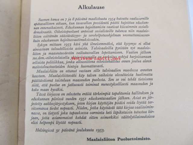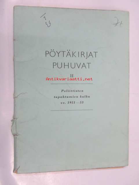 Pöytäkirjat puhuvat II. Poliittisten tapahtumien kulku vv. 1951-53 (Maalaisliiton Puoluetoimisto)