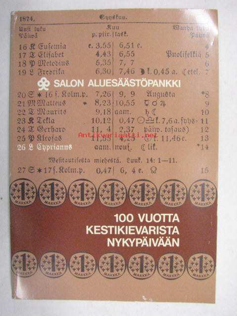 Salon aluesäästöpankki 1874-1974 100 vuotta - Kestikievarista nykypäivään
