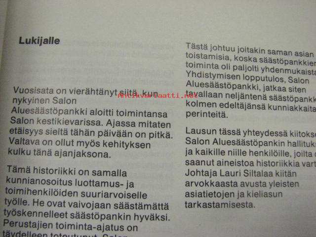 Teuvo Alanen, Salon aluesäästöpankki, 1974 15 x 21 cm kirja.