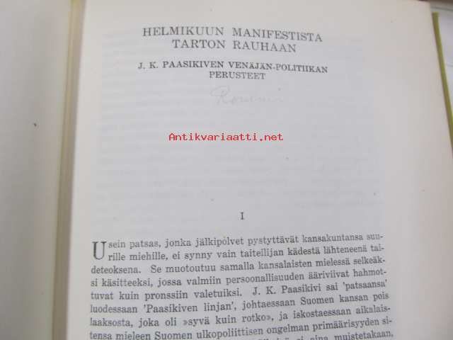 J. K. Paasikivi : itsenäisyys - rauha - valtiollinen sivistys