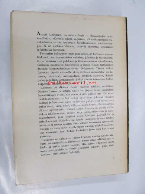 Saatavilla 1 kpl Julkaisuvuosi 1960 Sivuja 395 Painos 1 Kunto K3 Sidonta/painoasu Nidottu (pehmeäk.) Kielet Suomi