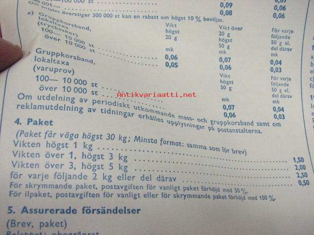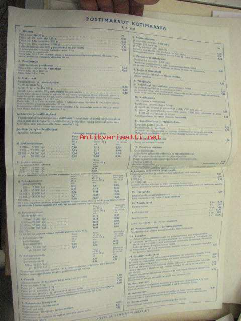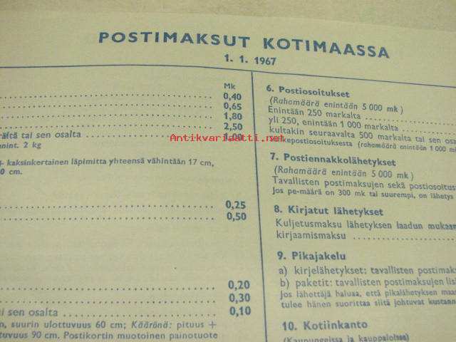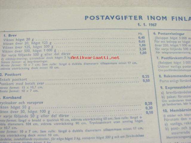 Postimaksut kotimaassa 1.1.1967 -hintajuliste