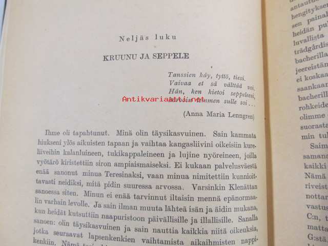 Saatavilla 1 kpl Julkaisuvuosi 1946 Sivuja 323 Painos 1. Kunto K3 Sidonta/painoasu Sidottu (kovak.) Kielet Suomi