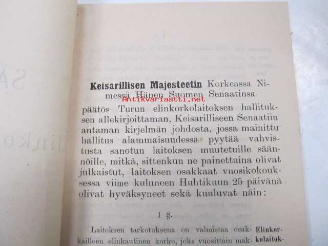 Säännöt Elinkorkolaitokselle Turussa 1891/Stadgar för Lifränteanstalten i Åbo 1891