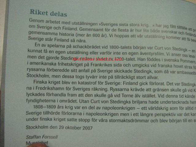 Sveriges sista stora krig Napoleonkrigen och förlusten av Finland 1808-1809 / Sweden´s last great war The Napoleonic wars and the loss of Finland 1808-1809 -Armémuseum 2007 näyttelykirja